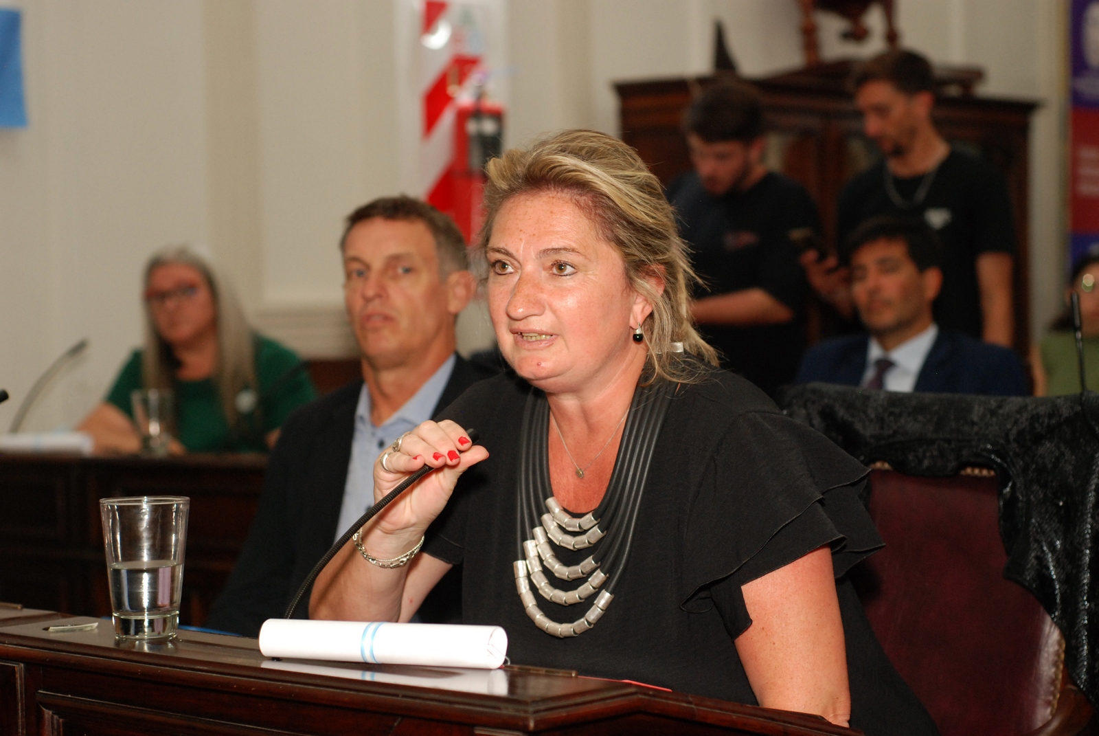 Estuvo presente el Secretario del HCD José Alvariño, y los siguientes Concejales: Gabriela Espinosa, Silvina Jensen Menna (Nva. Nec.); Juan Pablo De La Hera, Bettiana Pustilnick (ACT); Bartolomé Zubillaga, Guillermo Sánchez (AN); Mariano Valiante, Verónica Bibbo, Juan Cerezuela, Eduardo Caballero (LLA); Evangelina Almada, Julián Kristiansen (FP-MDF); María Eugenia Vallota (PRO-LLA); Marcelo Rivero, Silvia Blanco (FP).
